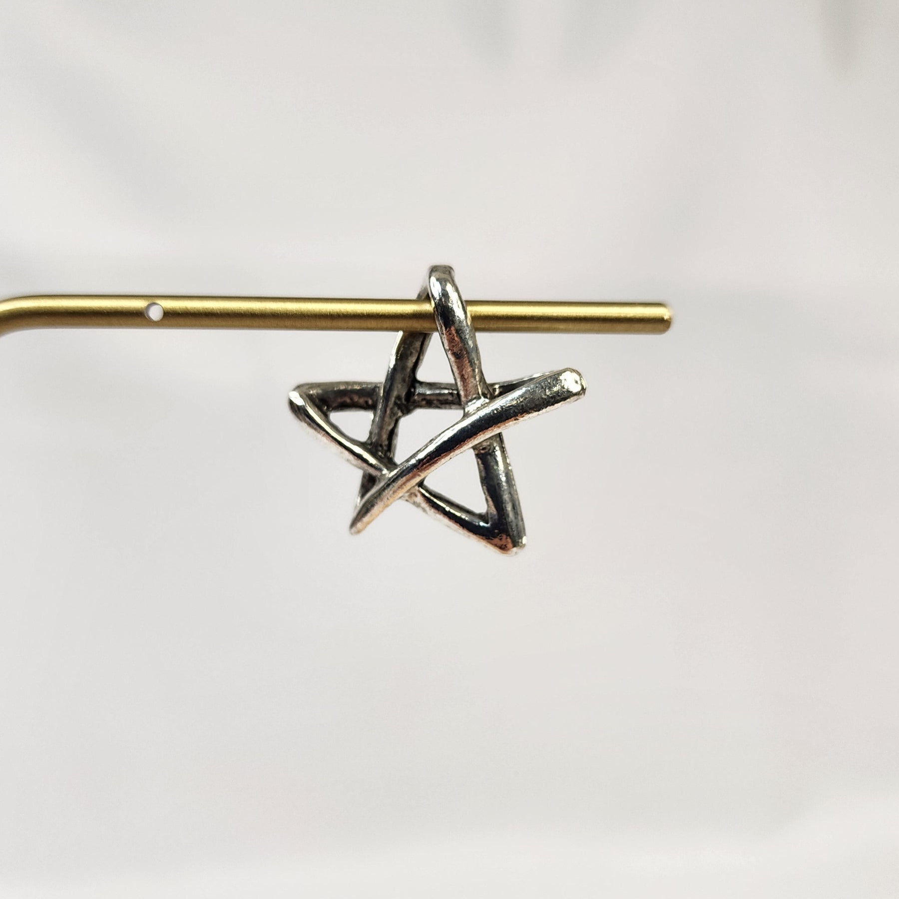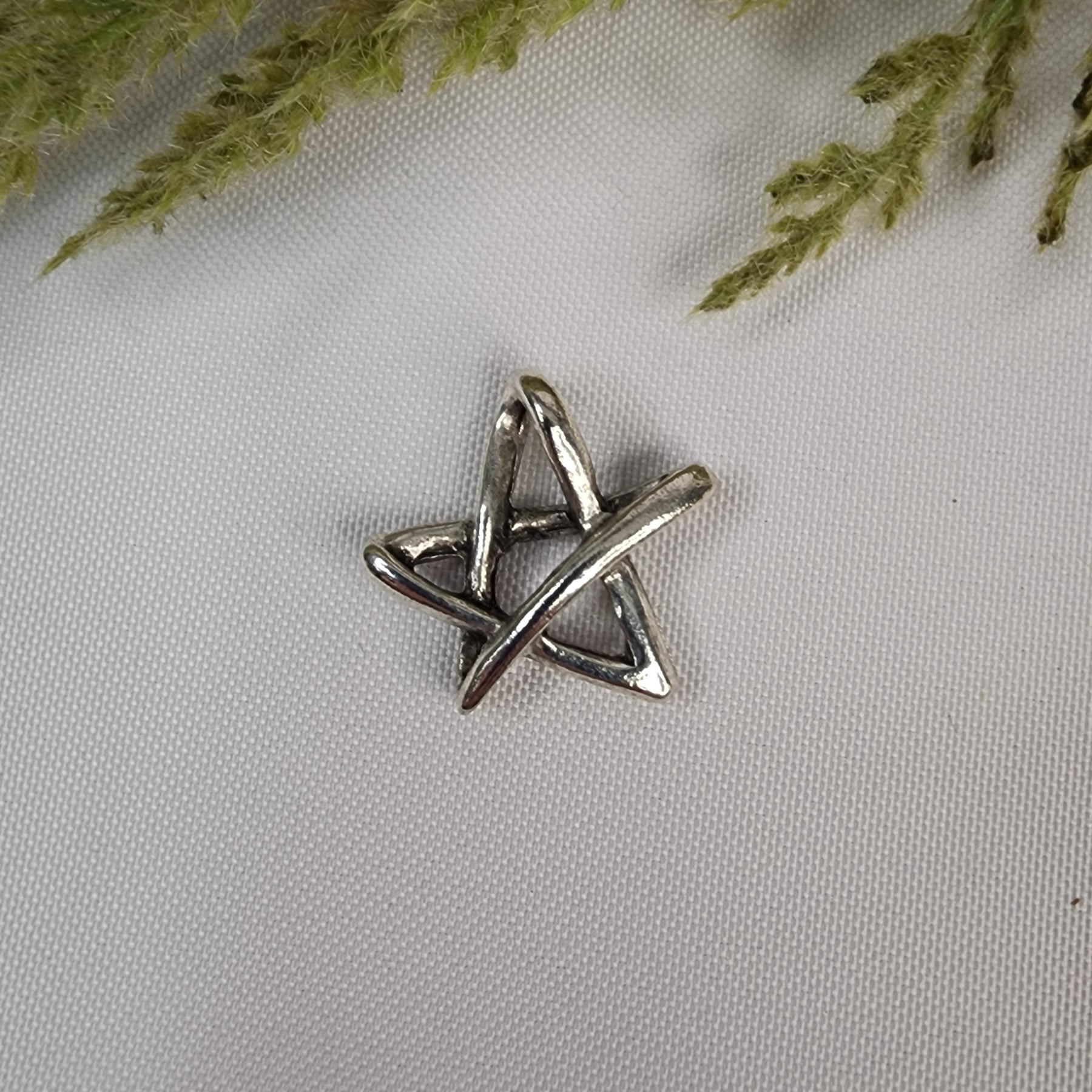 This woven pentacle pendant is considered a talisman or magical object, it is a five-pointed star (a pentagram) enclosed within a circle, often used to represent the five elements of earth, air, fire, water, and spirit, and for protection.