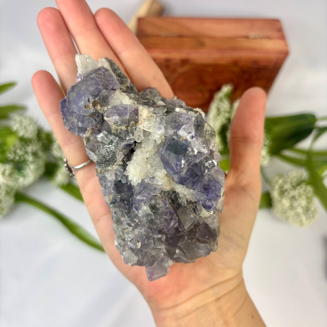 Chinese Fluorite Specimen: A powerful stone for balancing the chakras and emotions, clearing energy blocks, relieving anxiety and relieving chaos. Fluorite helps you to organize your thoughts and ideas so that you can put them into action. A great throat healer, fluorite brings clarity to your thoughts and words and helps you to speak more clearly.