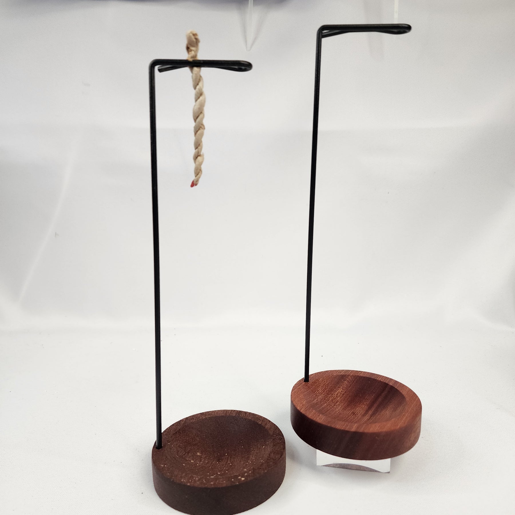 One of our most favorite ways to burn rope incense is with this decorative round wooden base with a tall metal rod to hang your rope incense.