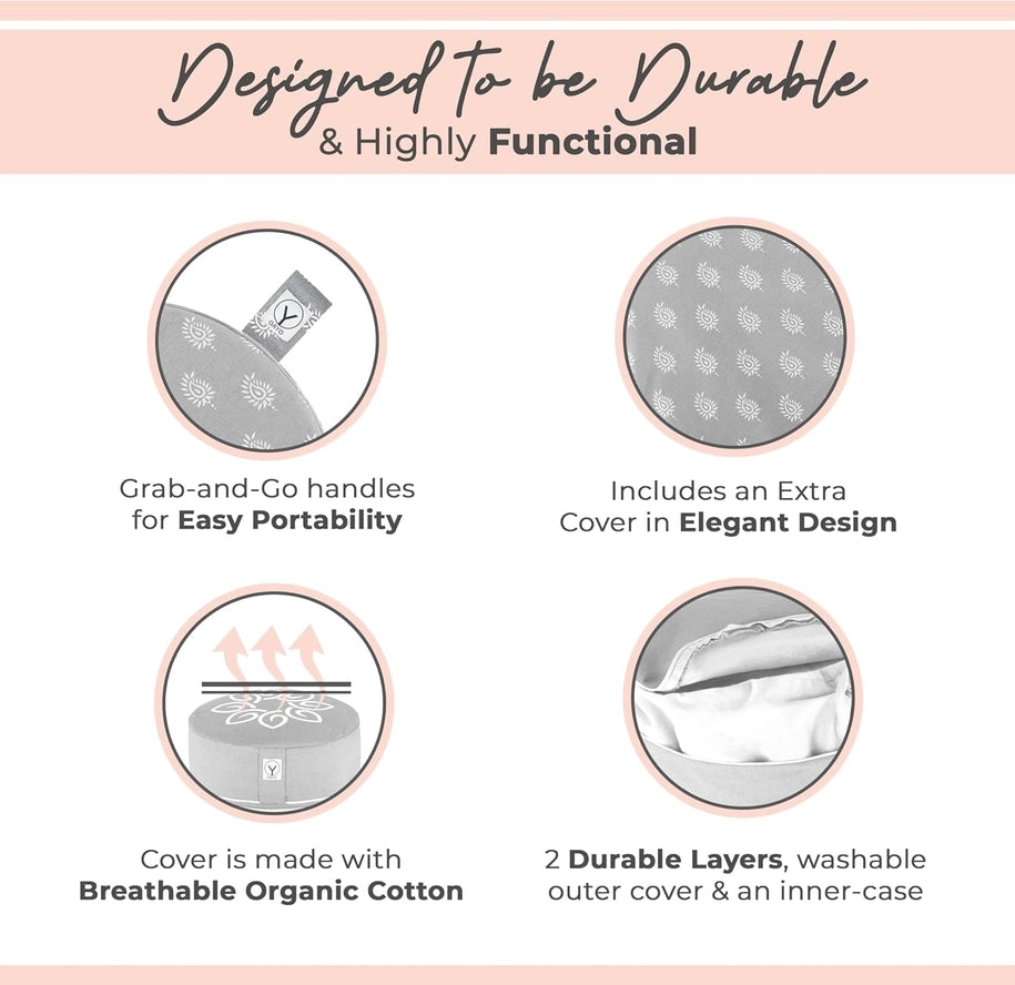 Elevate your meditation practice with Gayo’s Premium Buckwheat Meditation Cushion, the best buckwheat meditation cushion for beginners seeking comfort and sustainability. This eco-friendly buckwheat cushion promotes proper spinal alignment and reduces discomfort, thanks to its high-quality filling and removable organic cotton cover for easy care.
